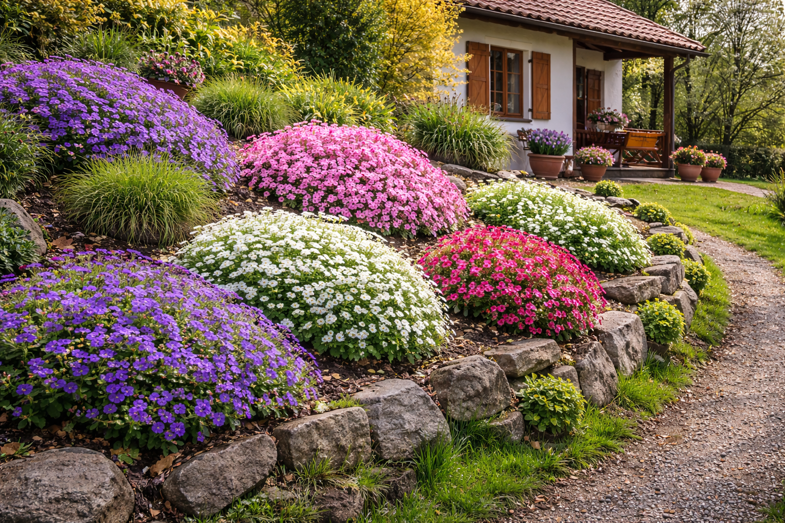 Eredmény: tavaszi színek, nyári virágzás, őszig tartó struktúra.
