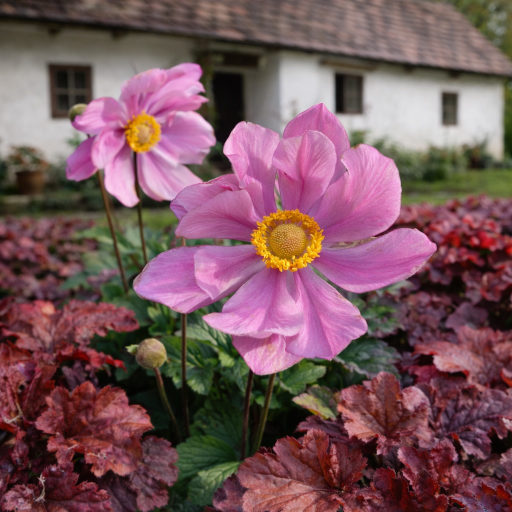 A rózsaszín szellőrózsa akkor mutat a legszebben, ha hasonló igényű, finom megjelenésű növényekkel társítjuk. Kifejezetten jól illik: