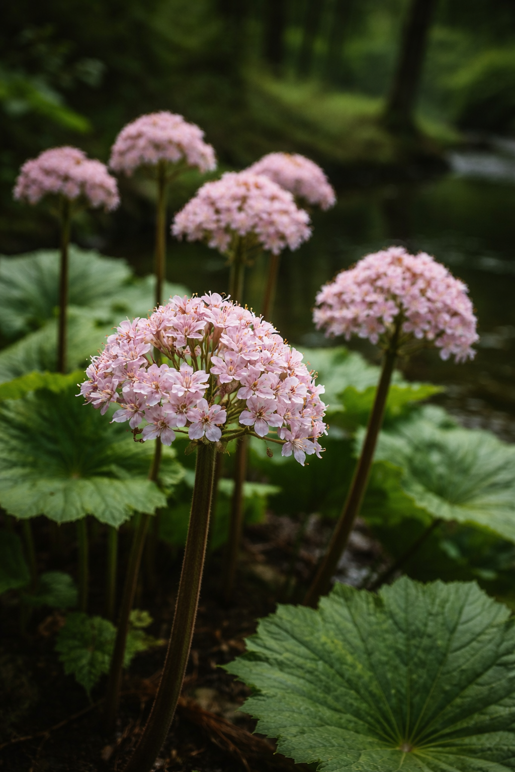 A Darmera peltata egy különleges megjelenésű, nagy lombú évelő, amely az árnyékos és nyirkos kertrészek egyik leglátványosabb növénye lehet. Karakteres leveleivel és korai virágzásával erős szerkezeti elemet ad a kertnek, miközben megjelenése természetes, nem hivalkodó. Ideális választás olyan helyekre, ahol a lomb mérete és formája adja a kert fő látványát.