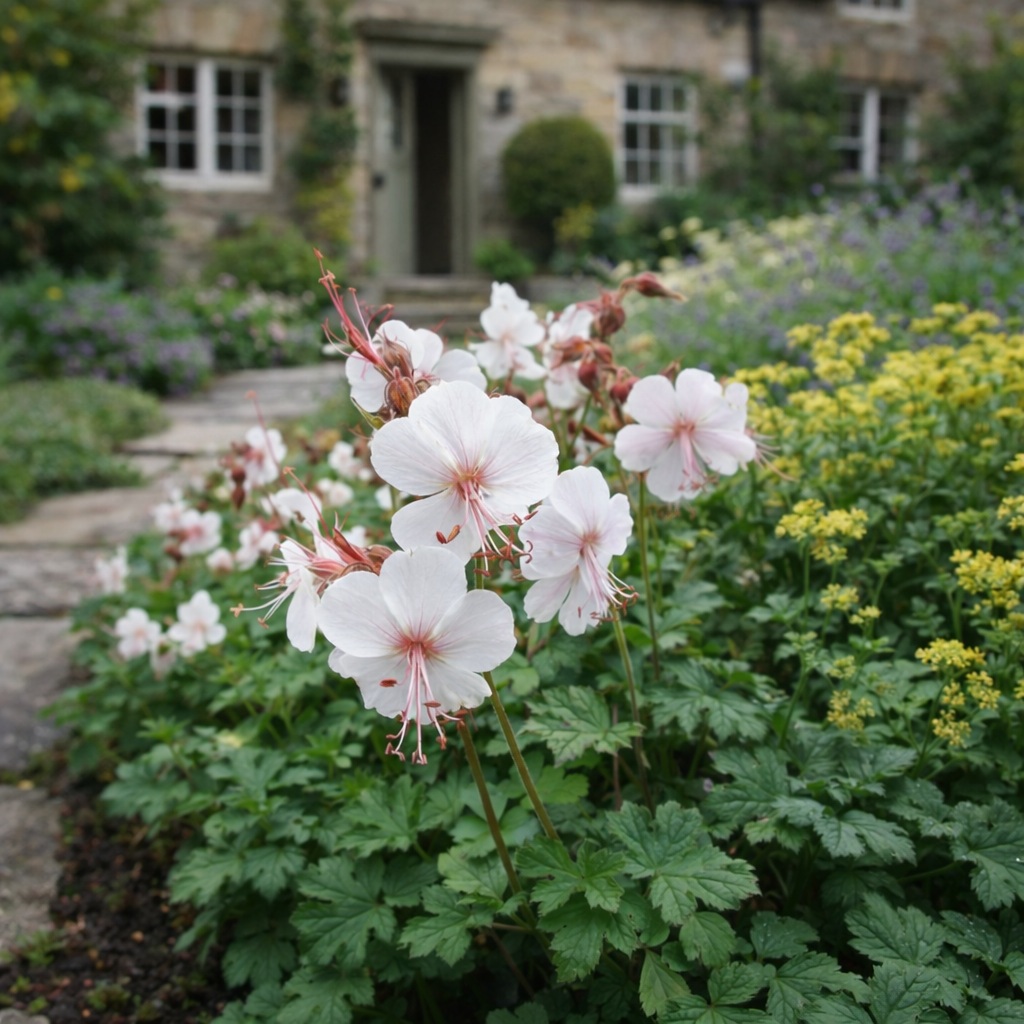 A fehér virágú angol gólyaorr alacsony növekedésű, gyorsan terjedő évelő, amely sűrű, egységes talajtakarót képez. Finom fehér virágai kora nyáron jelennek meg, rendezett, friss hatást adva az évelőágyásoknak. Napos és félárnyékos fekvésben is megbízhatóan fejlődik, ideális szegélyekbe, fák alá és természetes hatású kertrészekbe.