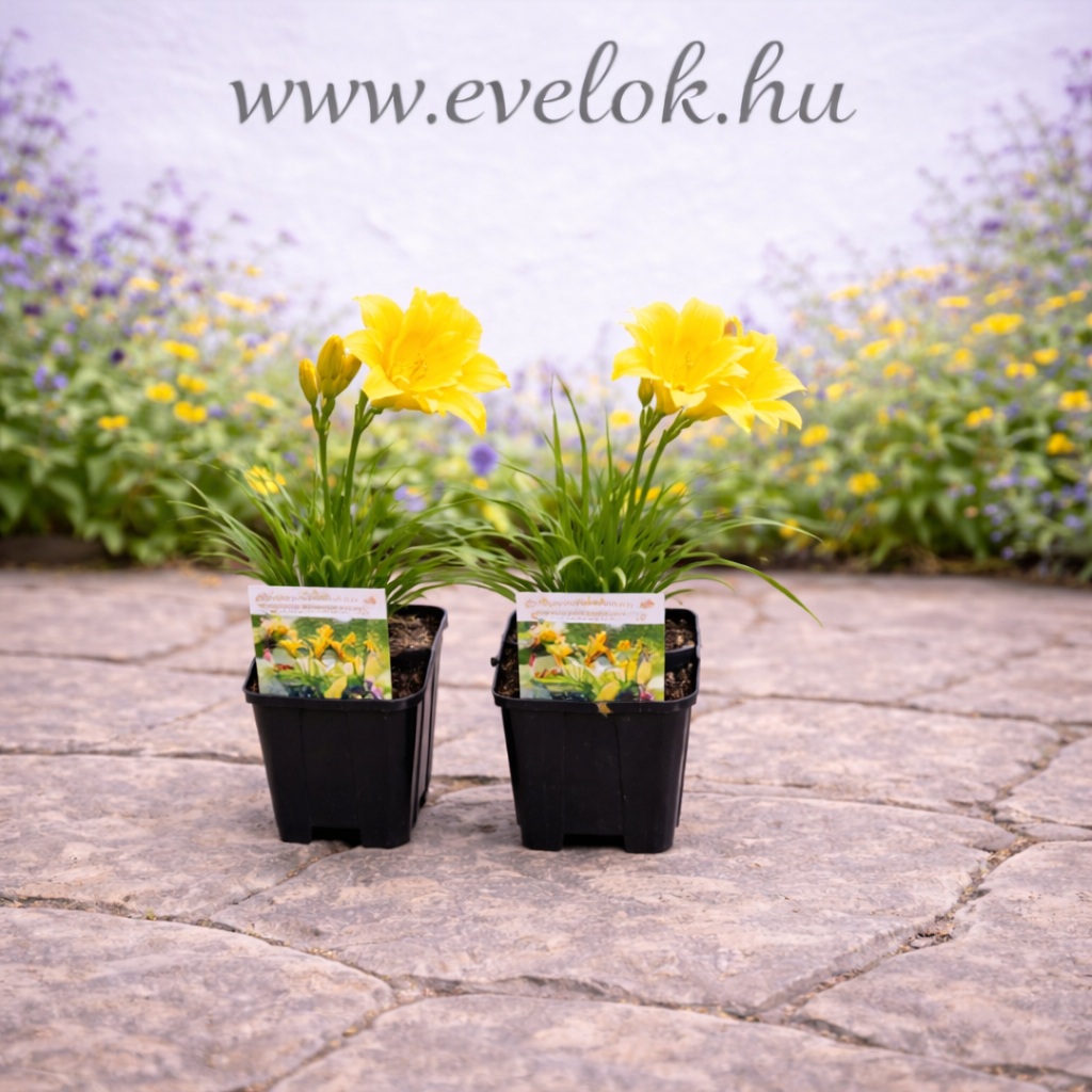 A Hemerocallis Stella de Oro egy alacsonyabb termetű, mégis rendkívül hálás és látványos sásliliom, amely kompakt méretével és hosszan tartó virágzásával vált az egyik legkedveltebb fajtává. Körülbelül 30–40 cm magas, sűrű bokrot alkotó, ívesen lehajló, sásszerű levelei egész szezonban üde zöld hátteret adnak. Ebből emelkednek ki élénk napsárga virágai, amelyek folyamatosan nyílnak, majd kedvező körülmények között a nyár végén újra virágba borul. Megbízható, könnyen nevelhető növény, amely szegélynövényként, ágyások előterébe vagy nagyobb foltokban ültetve is kiváló választás.