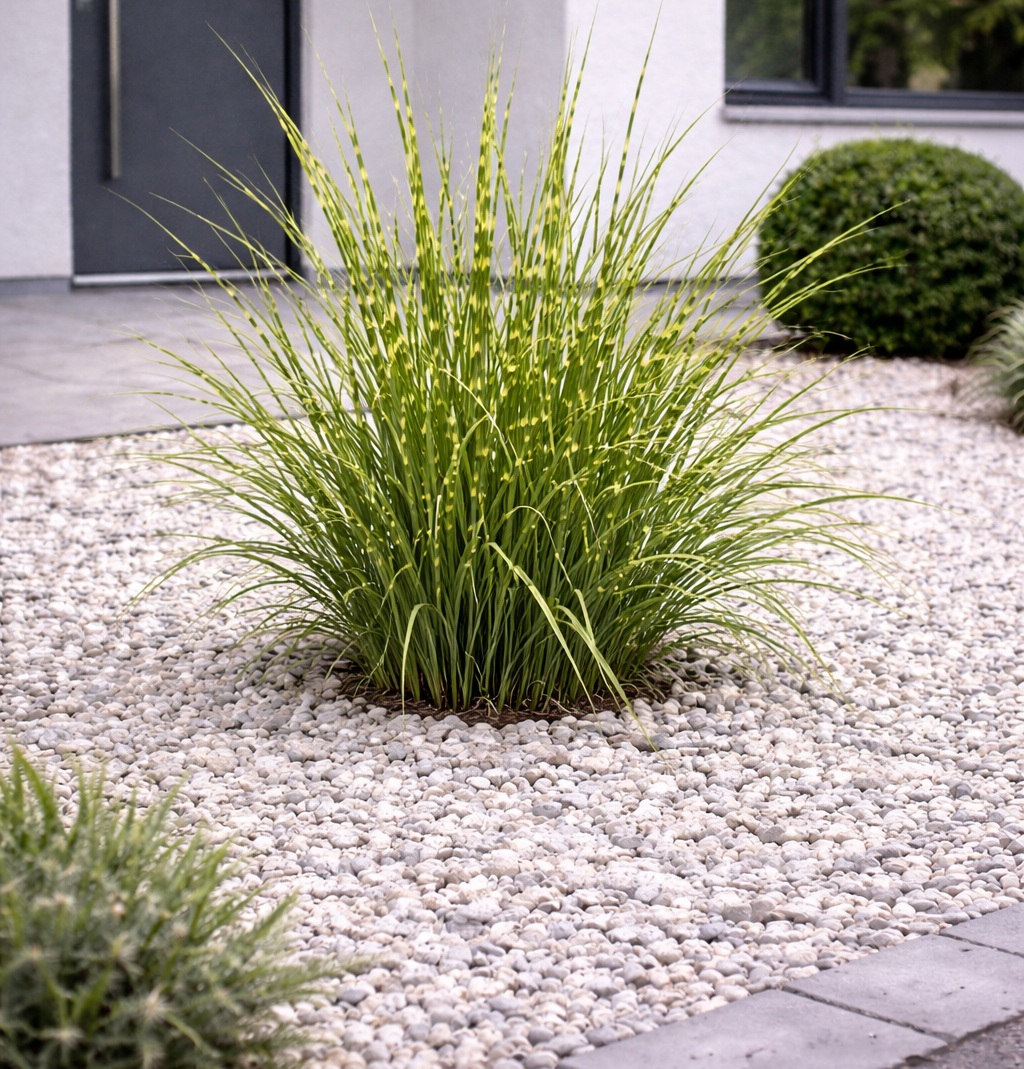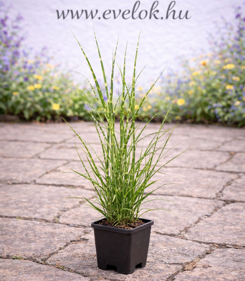 A törpe zebrasás egy igazán látványos, modern hatású díszfű, amely különleges, világoszöld levelein futó sárga harántcsíkjaival egész szezonban díszít. Közepes termetű növény, kifejlett magassága körülbelül 80–100 cm, míg szélessége 60–90 cm között alakul, így jól strukturálja az évelőágyásokat. Már lombjával is erős vizuális elemet ad a kertnek, augusztustól pedig megjelenő világosbarna virágai tovább növelik díszértékét, amelyek ősszel is mutatósak maradnak. Szoliterként, csoportosan ültetve vagy modern kertek hangsúlyos elemeként egyaránt kiváló választás.