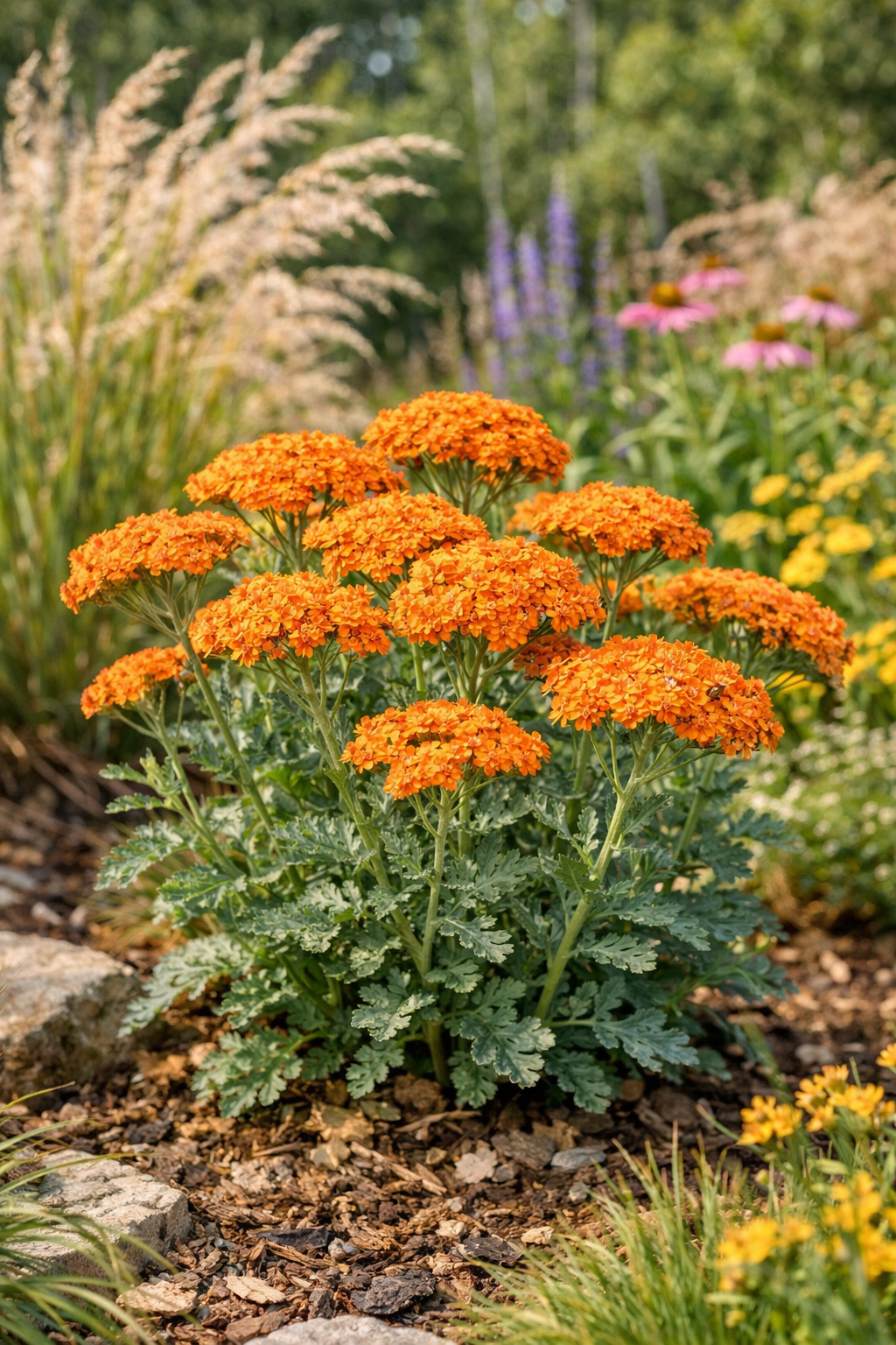 A narancssárga virágú cickafark az egyik legdinamikusabb megjelenésű évelő, amely meleg árnyalataival azonnal életet visz a napos kertrészekbe. Virágai nem harsányak, inkább természetesen izzó színfoltot alkotnak, amely különösen jól érvényesül zöld lombú vagy ezüstlevelű növények társaságában. Júniustól kezdve hosszú heteken át virágzik, így a nyári kert egyik biztos dísze.