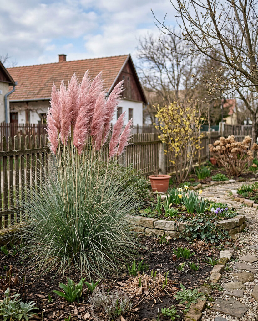 Ezekkel a növényekkel társítva a rózsaszín pampafű hangsúlyos fókuszpont marad, miközben az ágyás rétegzett, kiegyensúlyozott és hosszú távon is dekoratív lesz, különösen nagyobb kertekben és modern beültetésekben.