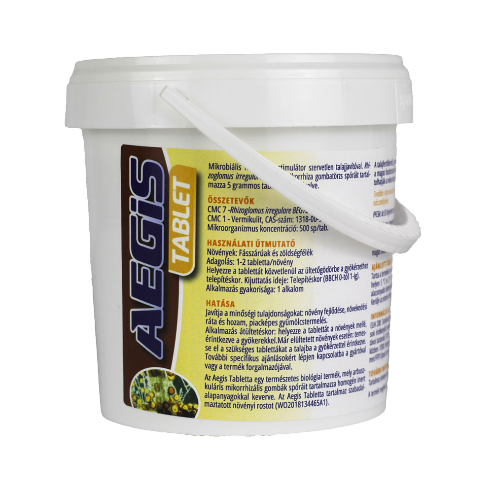 Az Aegis Tablet egy természetes gyökérstimuláló készítmény, amely 5 grammos tabletták formájában tartalmazza a Rhizoglomus irregulare BEG72 mikorrhiza gombatörzs spóráit. Alkalmazásával a növények gyökérzete szoros szimbiózist alakít ki a hasznos gombával, ami elősegíti a tápanyag- és vízfelvételt, javítja a növény kondícióját és stressztűrését. Telepítéskor közvetlenül a gyökér mellé kell helyezni.